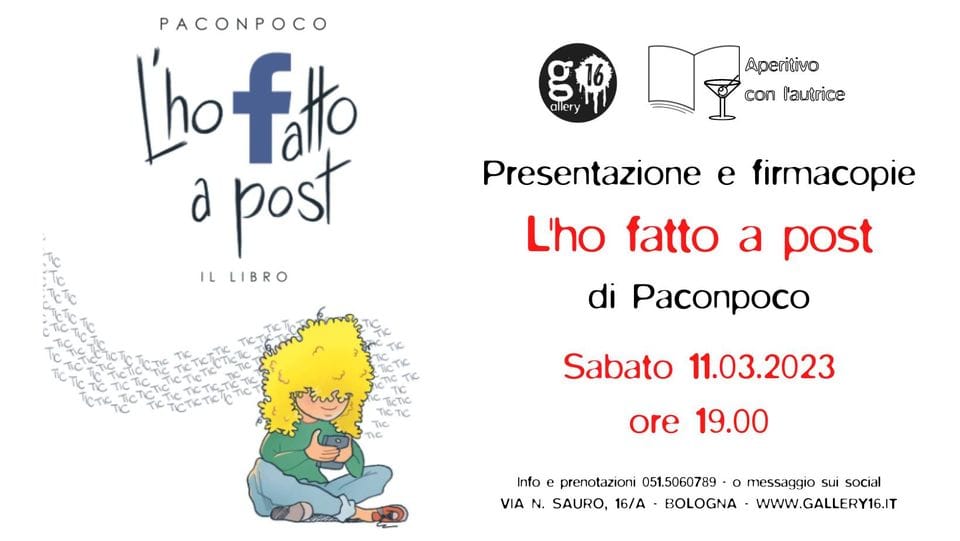Gli organizzatori dell'evento "Aperitivo con l’autrice Paconpoco “L’ho fatto a post” presentazione e firmacopie" sono Gallery16 e Paconpoco.
