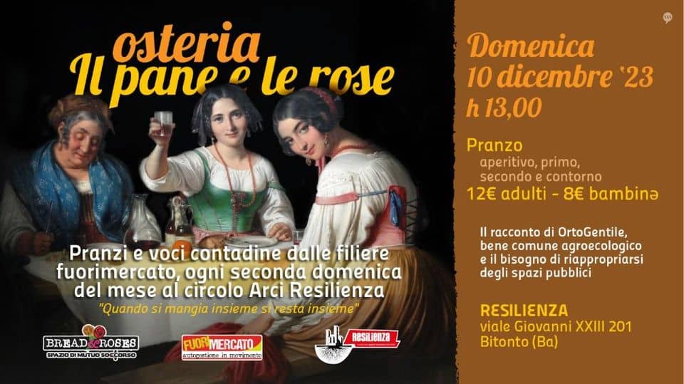 Osteria il pane e le rose, pranzi e voci contadine dalle filiere fuori mercato, ogni seconda domenica del mese al circolo Arci Resilienza
