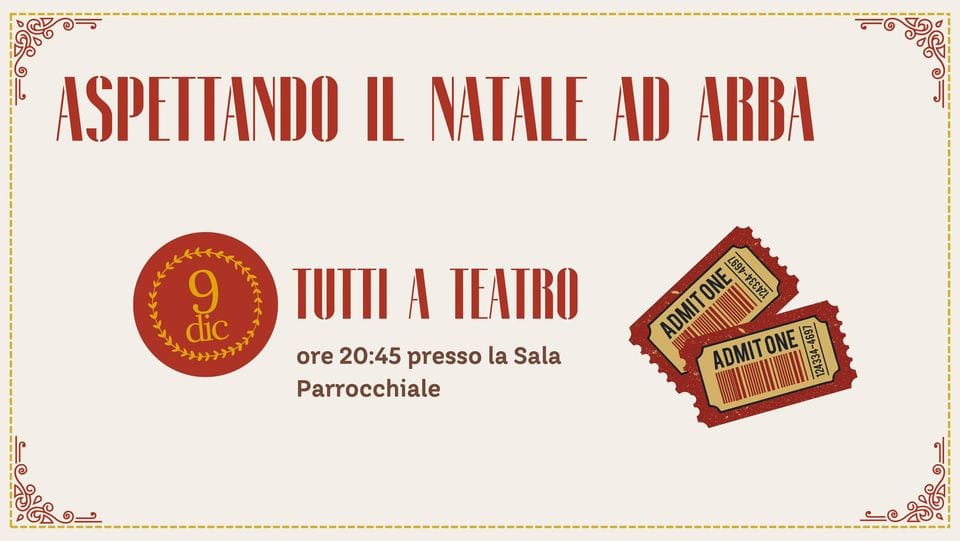 L'evento Tutti a Teatro! inizierà sabato 9 Dicembre 2023. Controlla l'orario di inizio.