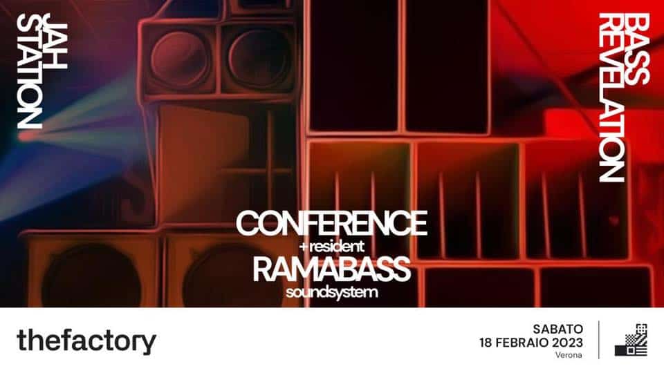 Gli organizzatori dell'evento "Verona Dub Club Jah Station Bass Revelation Ramabass" sono The Factory, Bass Revelation Sound System, Jah Station Soundsystem, Ramabass Sound system e Blue Zone Hi-Fi.