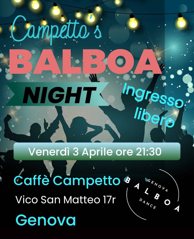 L'organizzatore dell'evento "Caffè Campetto Balboa Swing Party" è Love Balboa By Genova Balboa Dance.