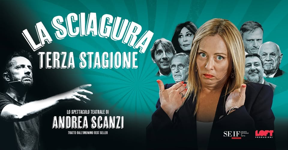 Dopo il grande successo di Renzusconi (2018) e Il Cazzaro verde (2019-2020), Andrea Scanzi torna sul palco con un nuovo spettacolo di satira politica: La Sciagura – Cronaca di un governo di scappati di casa. Tratto dall’omonimo bestseller edito da Paper First, Scanzi mette ora in scena la sconfinata pochezza di un governo composto perlopiù da “scappati di casa”.