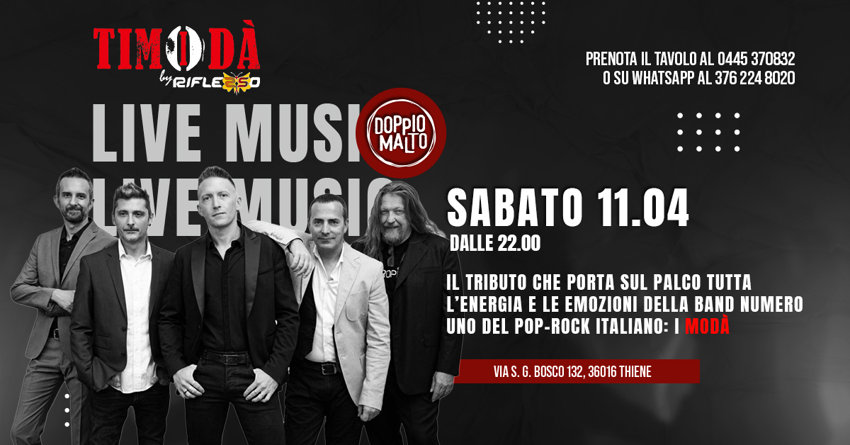 L'organizzatore dell'evento "TIMODÀ tributo che porta sul palco tutta l’energia dei Modà" è Doppio Malto Thiene.