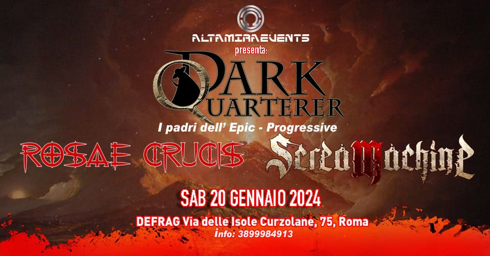 Gli organizzatori dell'evento "Dark Quarterer Special Guest – Defrag – 20.01.2024" sono Altamira Events, Defrag, Rosae Crucis e Dark Quarterer.