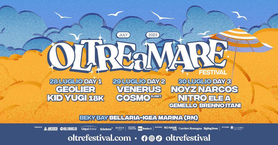 Gli organizzatori dell'evento "Oltreamare 2023 – Beky Bay" sono OLTRE Festival, Unipol Arena, Millenium, Arci Bologna e Beky Bay.